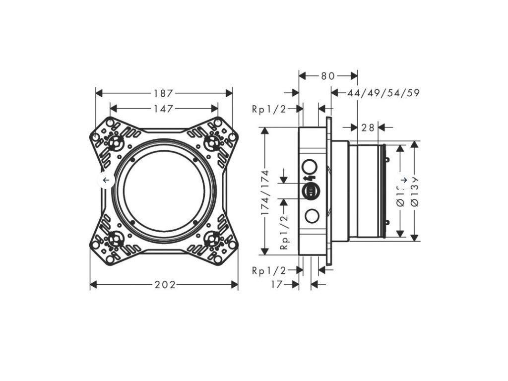 Univerzálne riešenie pre moderné kúpeľne, ktoré umožňuje inštaláciu rôznych sprchových a termostatových systémov, prednostne Pre nové podomietkové batérie Hansgrohe ShowerSelect Comfort a DuoTurn. Na iné modely je potrebné zakúpiť adaptér - alebo iBox1.
