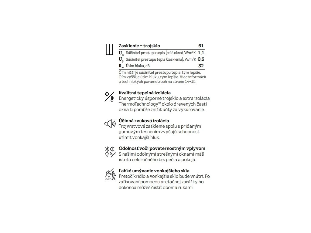 Vďaka výnimočnému trojsklu, inovatívnemu ThermoTechnologyTM a špeciálnemu tesneniu má toto okno vynikajúce izolačné vlastnosti.